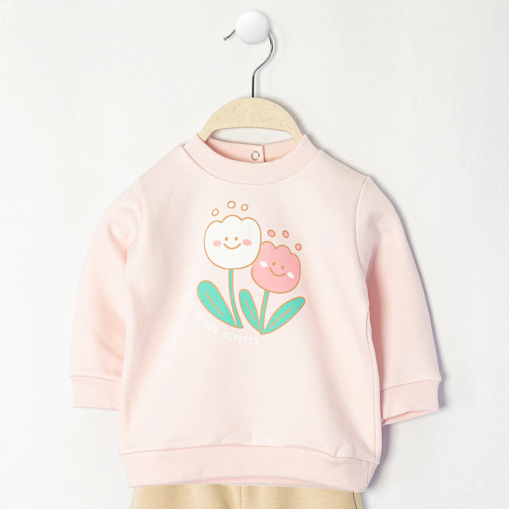 Este jogging para bebé nena está confeccionado en frisa peinada, una tela suave y cálida ideal para acompañar a los más pequeños en sus primeros meses. Presenta una delicada estampa "bambi" que le da un toque tierno y encantador.