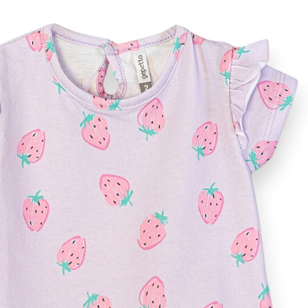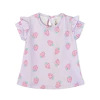 Remera bebé nena manga corta jersey estampado 100% algodón con volados en la manga, la apertura es en la espalda con forma de gota. Esta remera va del 1 al 6, te sugerimos que revises nuestra tabla de talles.