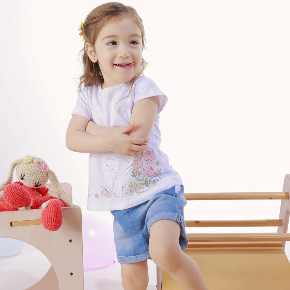 Remera bebé nena manga corta jersey 100% algodón con estampa delantero "guarda" y apertura en la espalda con forma de gota. Esta remera va del 1 al 6, te sugerimos que revises nuestra tabla de talles.