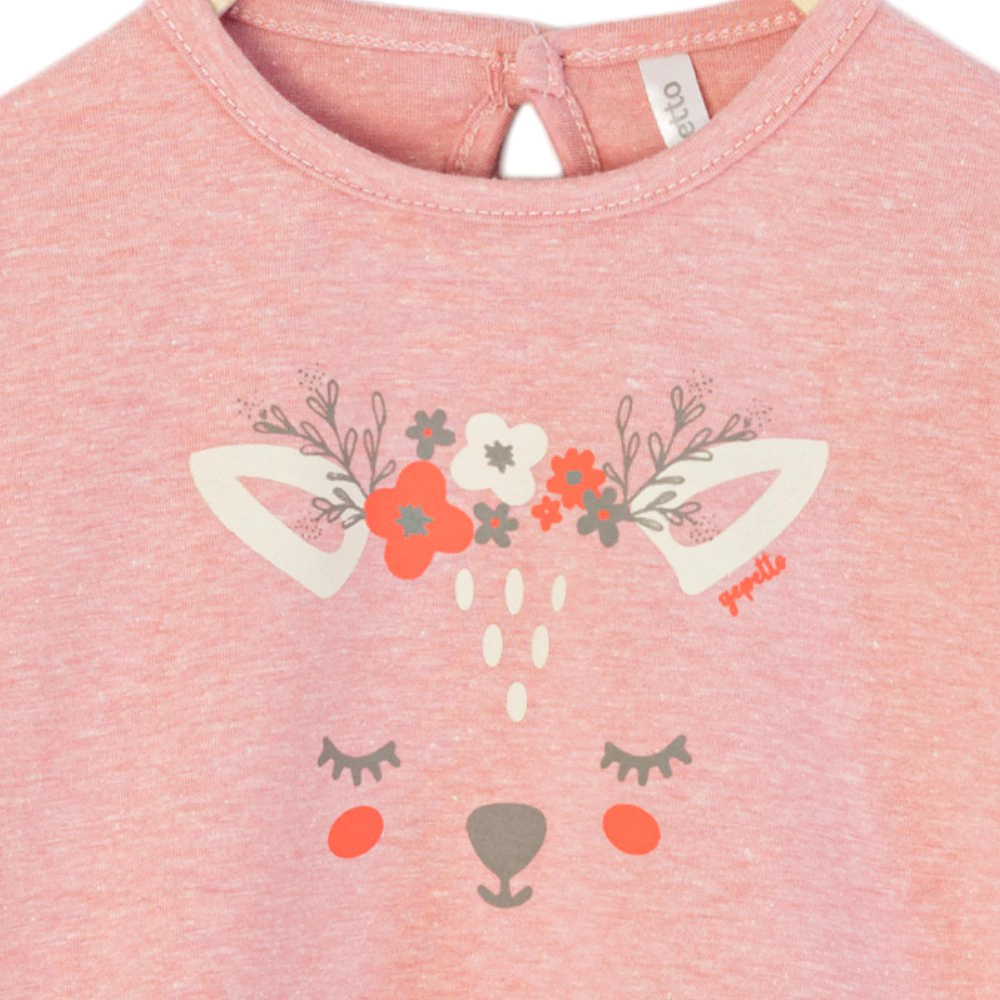Diseño Diferenciado: Presenta una encantadora estampa en el frente que hace que cada remera sea única. El elástico en las mangas y el frunce le dan un toque amplio y cómodo, permitiendo que tu bebé se mueva con libertad.