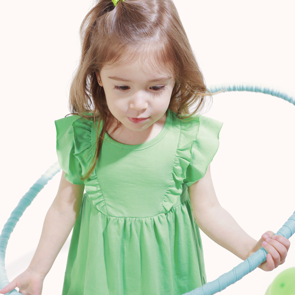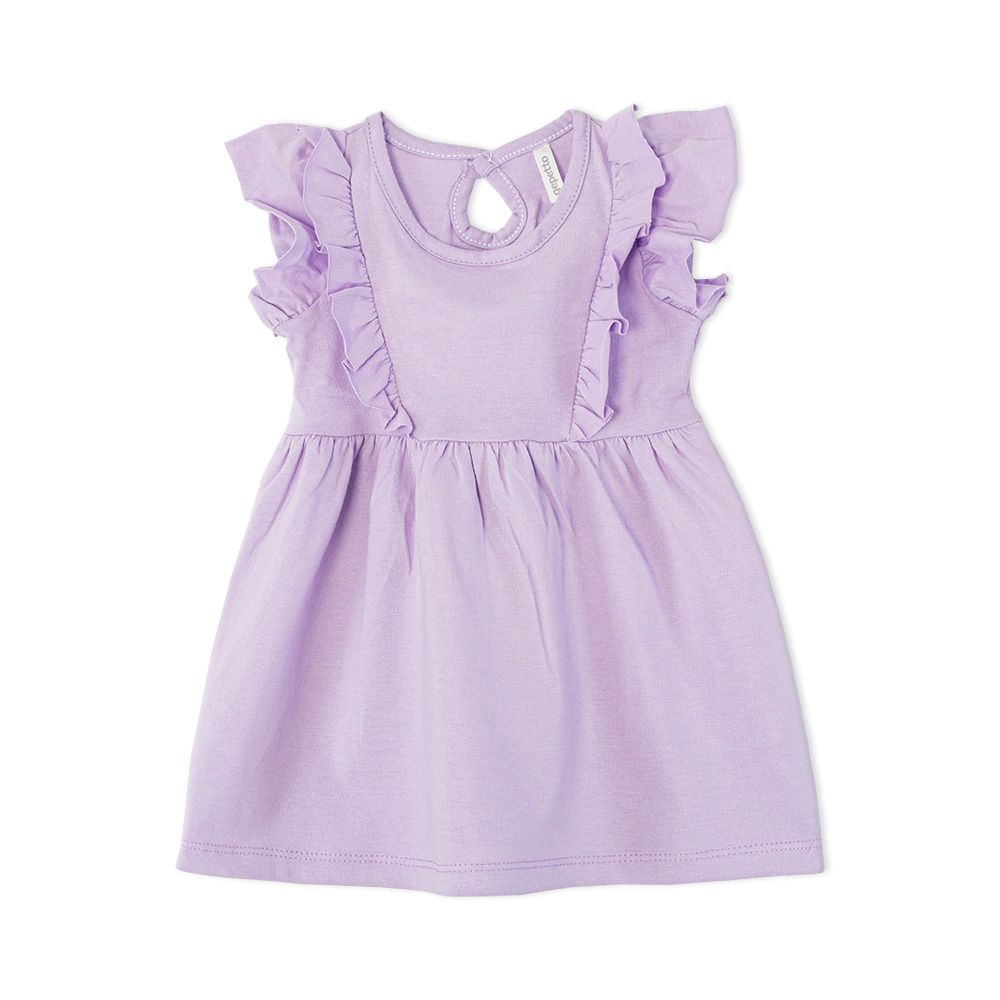 Vestido bebé nena jersey 100% algodón sin mangas con volados, tiene recorte y frunce que da mas amplitud. Su apertura es en la espalda con forma de gota. Este vestido va del 1 al 6, te sugerimos que revises nuestra tabla de talles.